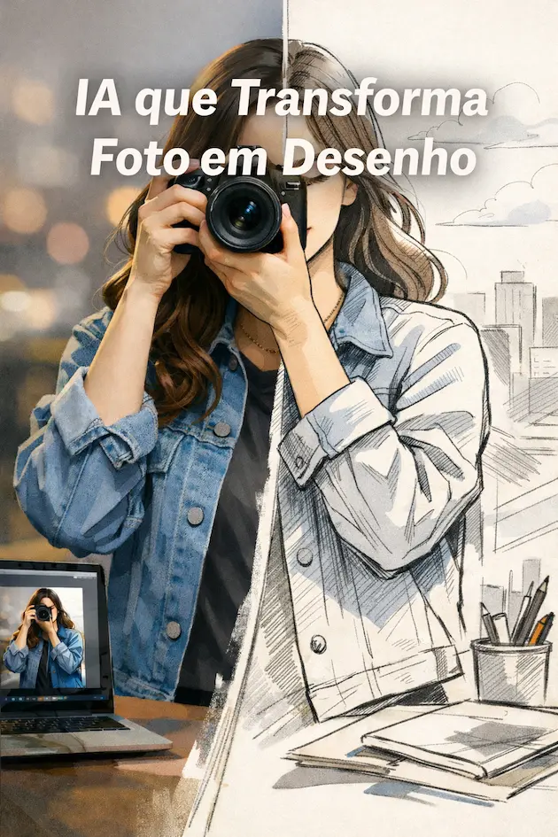 Ela analisa uma foto real e gera uma nova imagem desenhada, preservando formas e proporções.